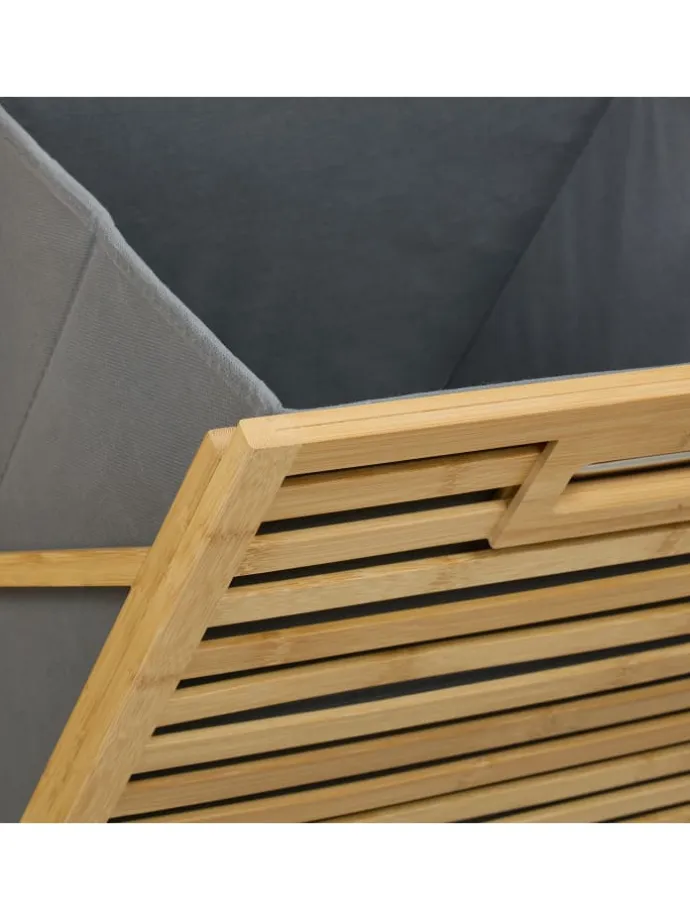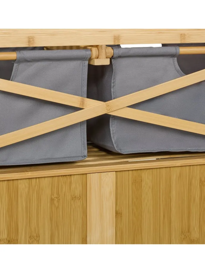 – Mit 2 kippbaren Schmutzwäschekörben aus grauem Stoff