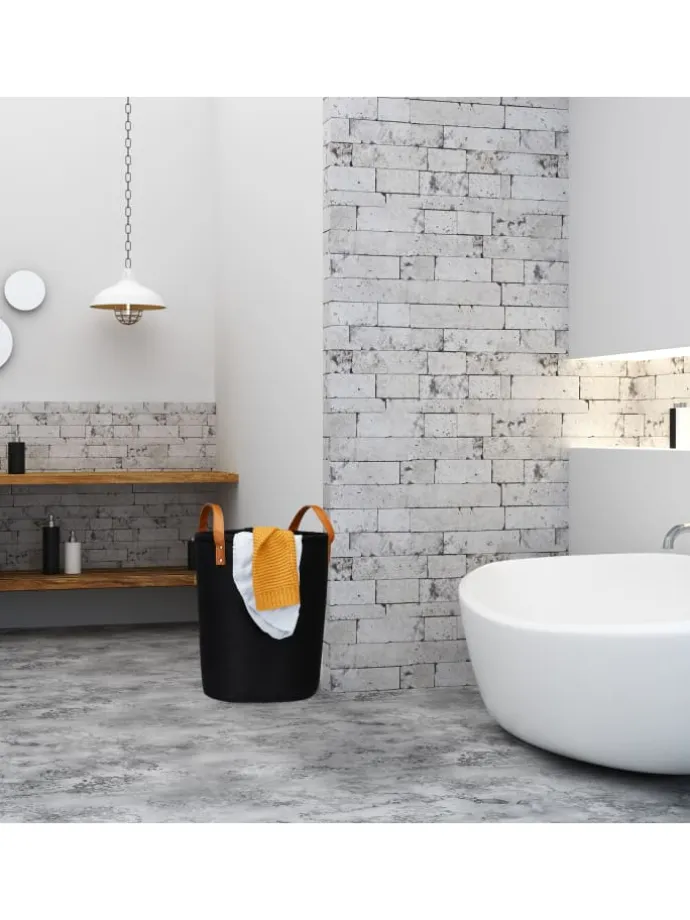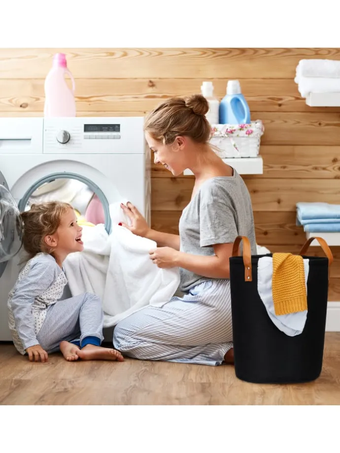 Mit den Wäschesammlern holst Du Dir praktische Ordnungshelfer nach Hause. Die großen Wäscheboxen bieten viel Platz für Deine Schmutzwäsche, die Du dank des 2er Sets auch gut nach Farben sortieren kannst. An den beiden Griffen trägst Du den Wäschebehälter bequem zur Waschmaschine hin und zurück. Bei Bedarf lässt sich der Wäschesammelkorb platzsparend zusammenfalten und verstauen. Zudem überzeugen die Wäschetonnen mit ihrem Design aus natürlichem Filz und den Griffen in Lederoptik.