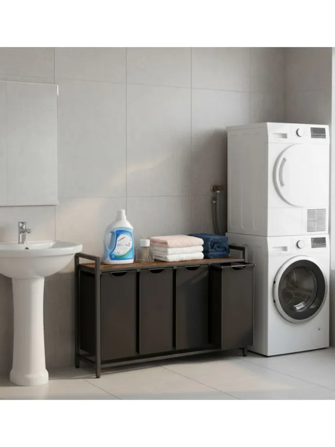 – Vier herausnehmbare Wäschesäcke aus robustem Stoff mit Tragegriffen