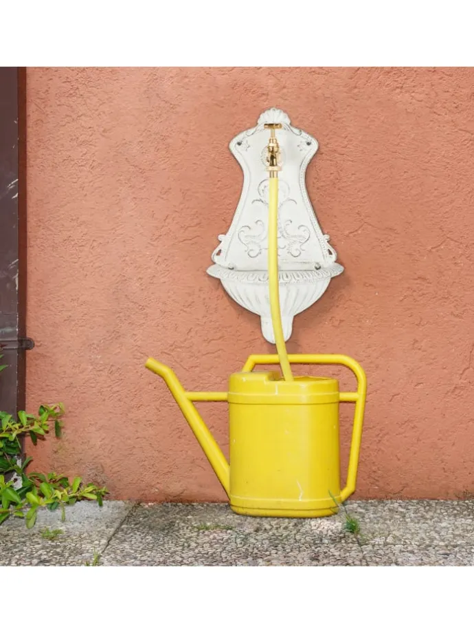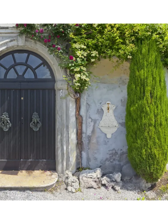 Der verzierte Wandbrunnen setzt mit seiner nostalgischen Optik dekorative Akzente auf der Terrasse oder im Garten. Ob Du schmutzige Hände waschen, Gartengeräte säubern oder die Gießkanne füllen möchtest, der Gartenbrunnen ist eine praktische, vielseitige Wasserstelle. Das Außenwaschbecken ist mit einem Wasserhahn und einem rückseitigen Anschluss für die Wasserleitung ausgestattet. Dank der Fertigung aus beschichtetem Gusseisen ist das Wandbecken perfekt für die Nutzung im Außenbereich geeignet.