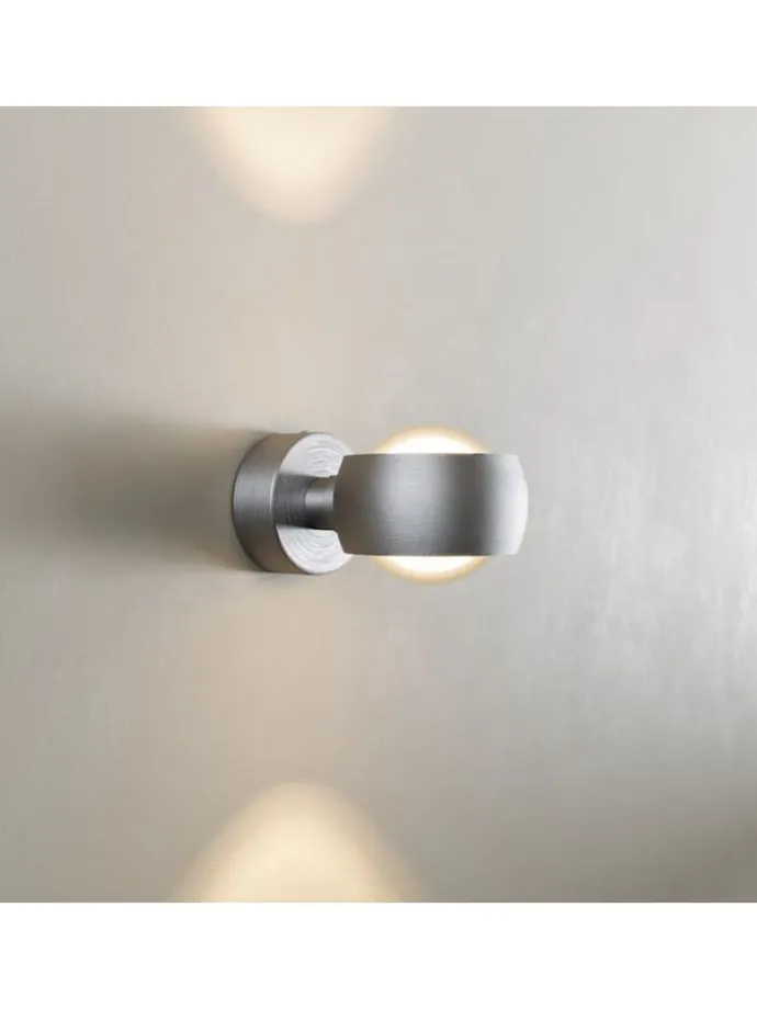 Besonders zeichnet sich die Beam Wandleuchte mit runder Basis durch ihre besondere Lichtwirkung aus. Der Aluminiumkopf ist mit 2 konvex geformten Linsen ausgestattet, welche über das G9 Leuchtmittel für faszinierende Lichtkegel a Ihren Wänden sorgen. Der Kopf aus poliertem Aluminum lässt sich dabei in alle Richtungen ausrichten, wodurch Sie die Leuchte als klassische Up&Down Leuchte, mit einem geneigten Kopf oder kunstvoll in einem Ensemble arrangiert verwenden können.