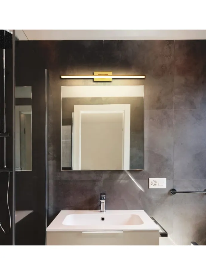 Wandleuchte Metall goldfarben matt, Aluminium goldfarben matt, Kunststoff opal, beweglich, IP44, POSTEN! kommt nur 1x, BxH: 600x70mm, AL: 120mm, inkl. LED 18W 230V, 1800lm Source, 1270-1970lm Output, 4000K