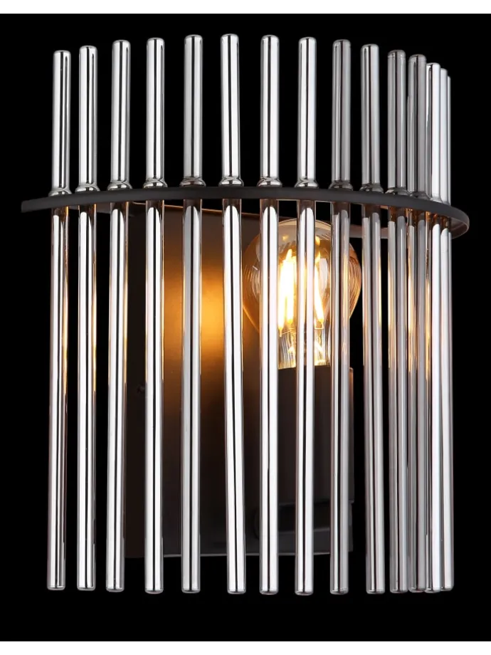 Wandleuchte Metall schwarz matt, Glasstäbe rauchfarben, BxH: 250x260mm, AL: 125mm, exkl. 1x E27 60W 230V