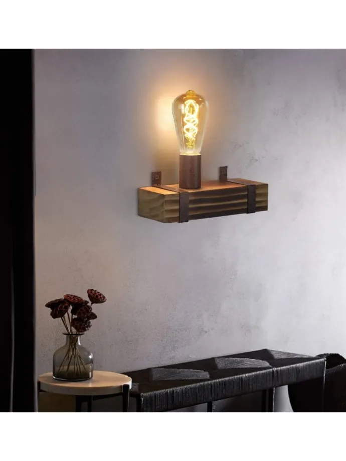 Wandleuchte in schwarz 1-flammige E27 vintage Metall und Holz L 23cm