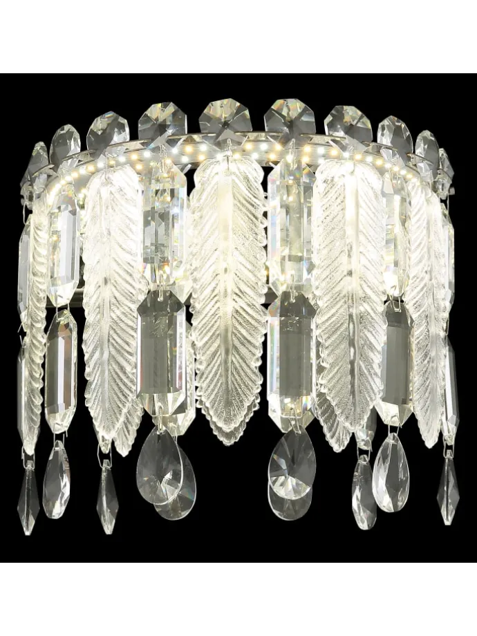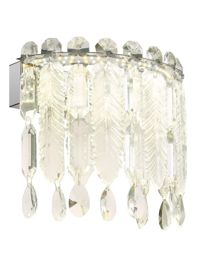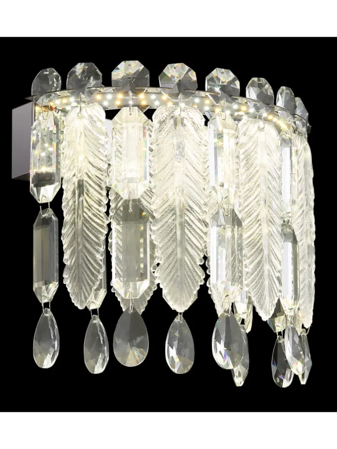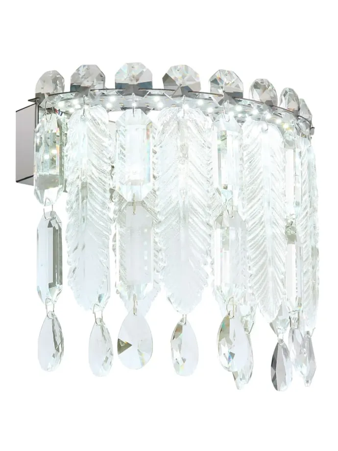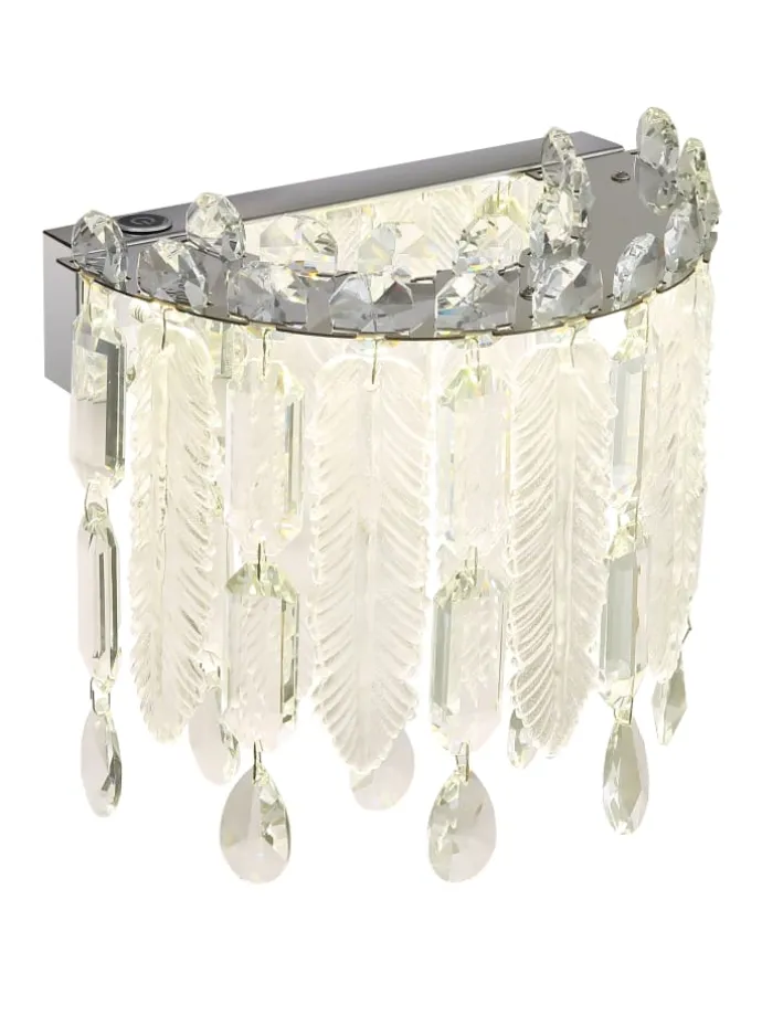 Wandleuchte Metall verchromt, K5 Kristalle klar, Glaskristalle klar, Touch Ein/Aus, stufenloser Touchdimmer, Farben fixierbar, Memoryfunktion, BxH: 280x245mm, AL: 170mm, inkl. LED 12W 230V, 150-1468lm Source, 95-895lm Output, CCT 2700/4000/6000K