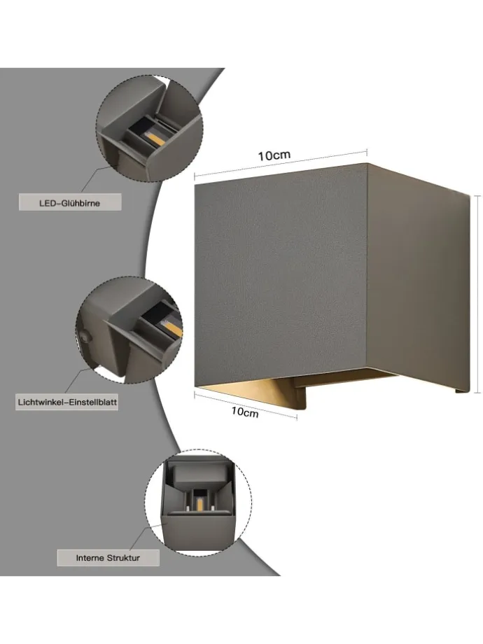 Einfache Installation – Unsere Gartenwandlampe ist nur 10*10*10 cm groß, kompakt im Design, platzsparend und sehr einfach zu installieren. Mit den beigefügten Installationsanweisungen können Sie diese Außenwandlampe schnell und mühelos montieren