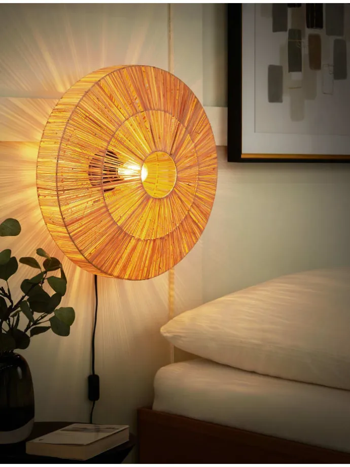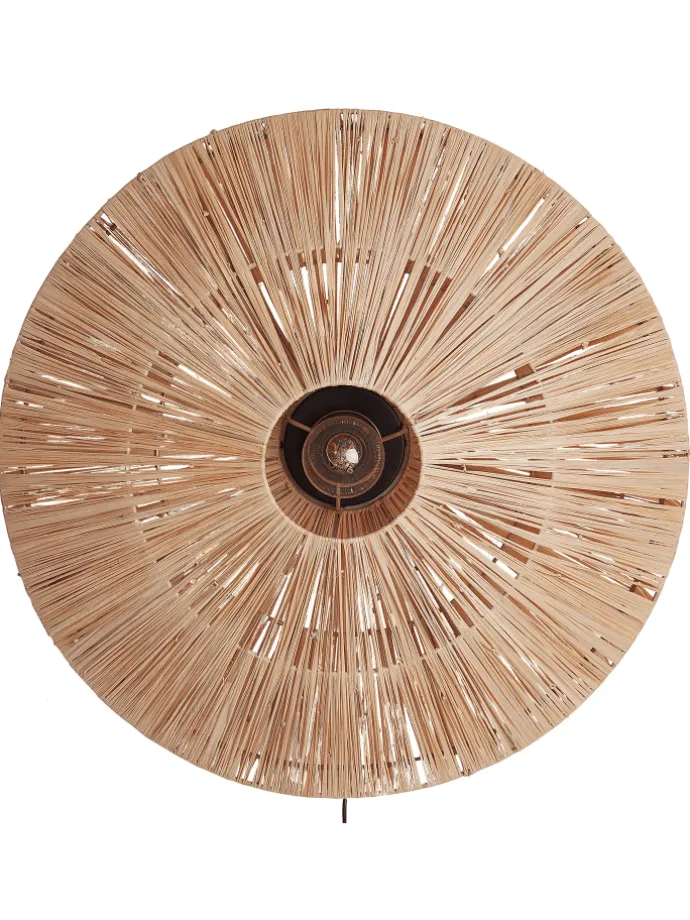 Moderne Wandlampe im Boho-Stil. Beleuchten Sie Ihr Wohnzimmer mit dieser stilvollen Wandlampe, die aus natürlichem Stroh handgefertigt ist. Dieses einzigartige Wohnaccessoire verleiht jedem Raum einen Hauch von rustikalem Charme und spendet gleichzeitig ein warmes, einladendes Licht. Die Leuchte eignet sich ideal neben einer Couch oder in einer Leseecke und lässt sich dank des Schalters einfach ein- und ausschalten. Verschönern Sie Ihren Raum ohne Aufwand mit Stil und Funktionalität.
