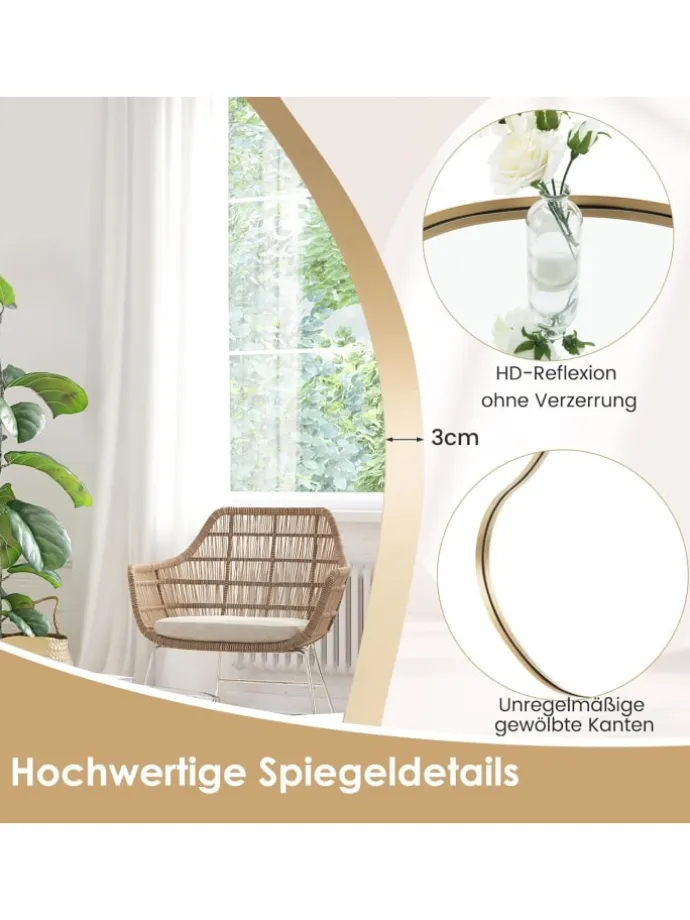 Werten Sie Ihre Wohnkultur mit diesem außergewöhnlichen Spiegel auf. Mit seinem einzigartigen und auffälligen Design ist dieser Spiegel perfekt für verschiedene Raumdekore geeignet. Darüber hinaus kann unser HD-Spiegel jedes Detail lebendig erfassen, um Ihnen eine wahre und genaue Reflexion zu bieten. Die Installation ist dank unserer 2-Wege-Aufhängefunktion einfach. Hergestellt aus Premium-Materialien bietet unser asymmetrischer Wandspiegel außergewöhnliche Qualität und Langlebigkeit. Investieren Sie in diesen wunderschön gestalteten Spiegel, der nicht nur Ihre Inneneinrichtung verbessert, sondern auch den Test der Zeit besteht. Sein modernes Design, sichere Funktionen, vielseitige Installationsmöglichkeiten und Premium-Handwerkskunst machen ihn zur perfekten Ergänzung für jeden Raum.