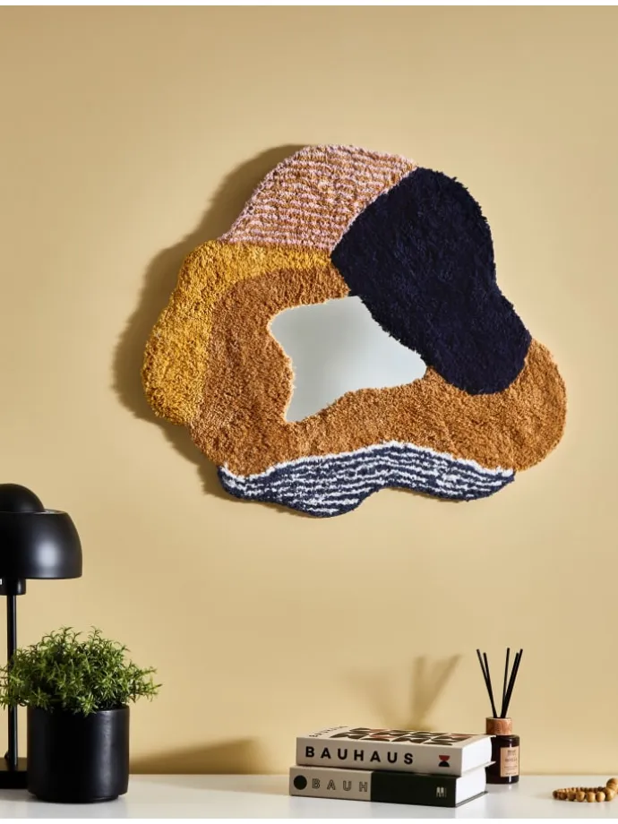 Dekorativer Spiegel in unregelmäßiger Form. Verleihen Sie Ihrem Raum mit diesem einzigartigen, handgefertigten Wandspiegel eine besondere Note. Das mehrfarbige Baumwollmaterial sorgt für eine weiche, strukturierte Haptik, während der abstrakte Stil für einen modernen Look sorgt. Seine unregelmäßige Form verleiht jedem Interieur Charakter. Dank der Haken auf der Rückseite lässt sich der Spiegel ganz einfach anbringen und aufhängen.