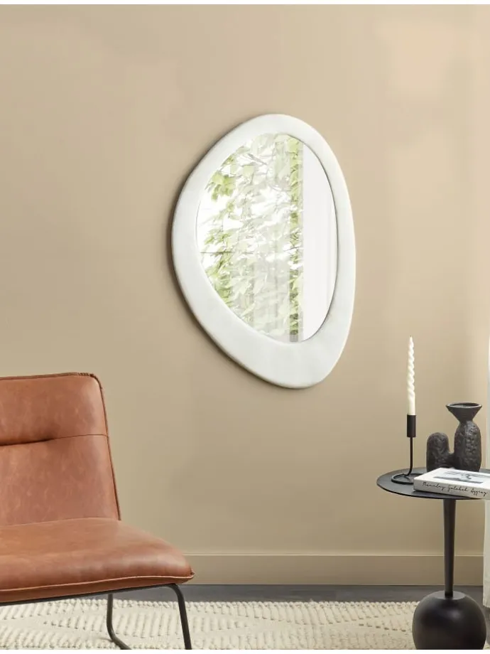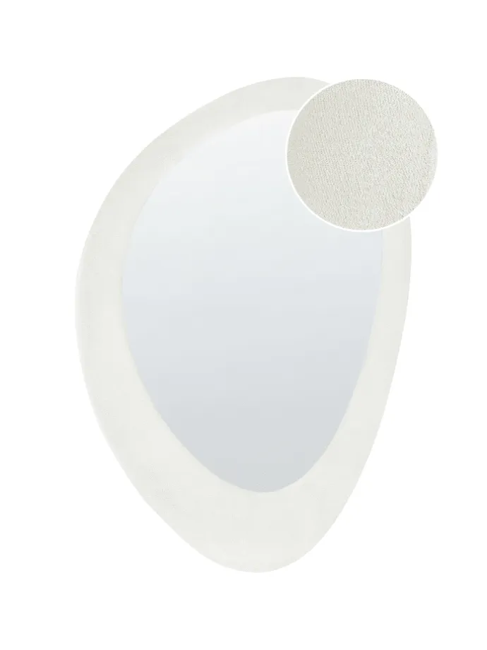 Unförmiger Spiegel mit breitem Samtrahmen. Dieser moderne Hängespiegel fesselt nicht nur mit seinem samtigen Glanz, sondern auch mit seiner unvergleichlichen Form- und Farbschönheit, die zusammen jede Wohnwand gekonnt auffrischen. Sein pflegeleichter Samtrahmen strahlt sowohl Haltbarkeit als auch Eleganz aus und garantiert jahrelange makellose Schönheit. Die praktischen Aufhängehaken an der Rückseite vereinfachen die Montage und erlauben Ihnen, den Spiegel waagerecht oder senkrecht an der Wand anzubringen.