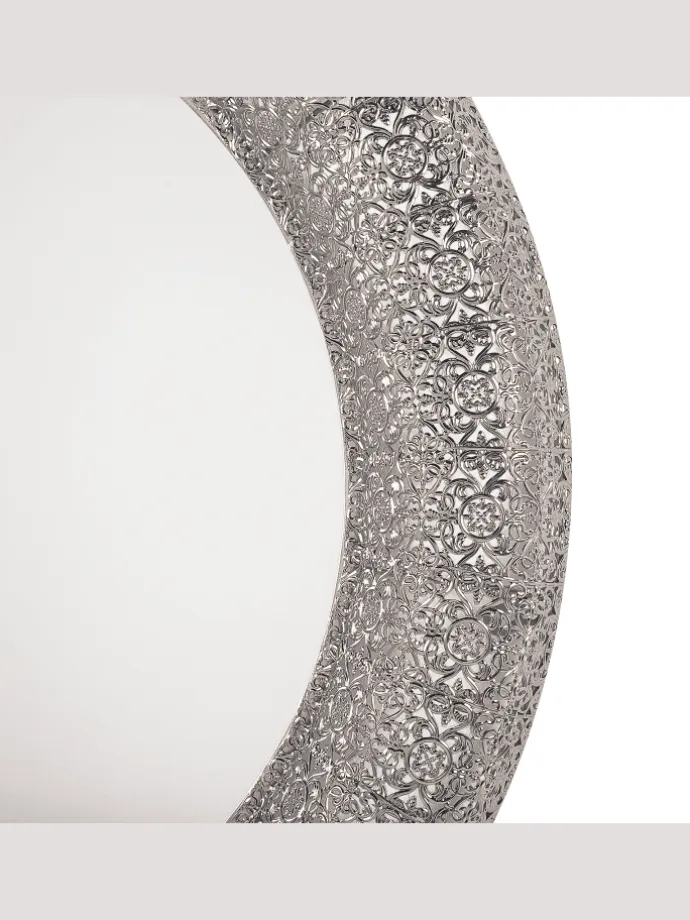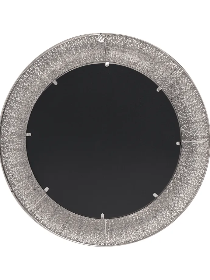 Runder Dekospiegel in Silber mit eleganter Ausstrahlung. Dieser Wandspiegel verleiht jedem kleinen oder großen Innenraum eine luxuriöse Atmosphäre. Das elegante Design des silberfarbenen Rahmens passt wunderbar zu einer Vielzahl von Einrichtungsstilen, von minimalistisch bis Vintage. Mit seinem runden, strukturierten Rahmen ist der Spiegel eine perfekte Ergänzung für Ihr Ess-, Wohn- oder Schlafzimmer.