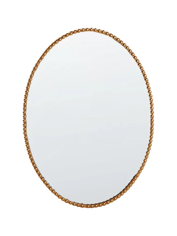 Ovaler Wandspiegel in Gold. Der goldene Wandspiegel in ovaler Form wird jedem Wohnraum ein subtiles Ambiente verleihen. Dank feiner Herstellung und minimalistischen Designs passt dieses Produkt sowohl zu klassischen als auch skandinavischen Interieuren. Wenn Sie Ästhetik und Funktionalität schätzen – wählen Sie diesen Spiegel.