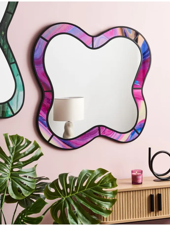 Moderner, asymmterischer Hängespiegel mit breitem Rahmen. Verleihen Sie Ihrem Raum Charakter mit diesem wunderschön gestalteten Spiegel, der moderne Schlichtheit mit einem vom Vintage-Stil inspirierten Flair verbindet. Aus robustem MDF und hochwertigem Glas gefertigt, ist er sowohl langlebig als auch stilvoll. Er eignet sich ideal für Wohn- und Schlafzimmer oder Flure und verfügt über praktische Aufhänger auf der Rückseite.