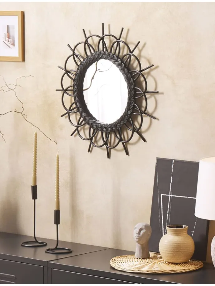 Runder Spiegel mit dekorativem Rahmen aus echtem Rattan. Ein stilvoller Spiegel ist ein unverzichtbares Accessoire in jedem Wohnbereich. Er kann nicht nur jeden Raum optisch vergrößern, sondern mit dem einzigartigen Design auch die Aufmerksamkeit auf sich ziehen und eine besondere Atmosphäre in Ihrem Zuhause schaffen. Dieses elegante Stück mit einem Rahmen aus natürlichem Rattan wird das sicherlich tun. Die verwendeten Materialien machen den Dekospiegel langlebig und pflegeleicht – so wird er Ihr Zuhause über Jahre hinweg schmücken.