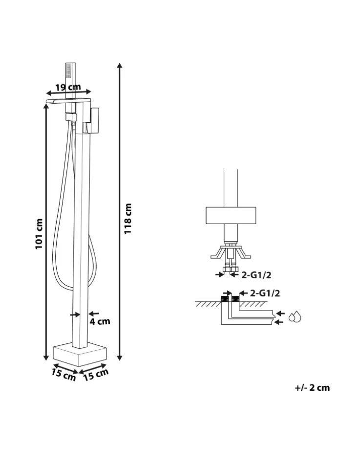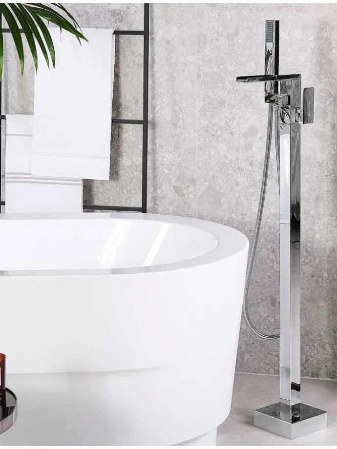 Sie kaufen: Freistehende Badewannenarmatur, 1 x Handbrause inkl. Anschlussschlauch, Montagematerial