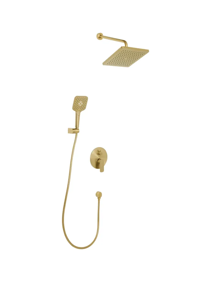 Unterputz Duschset mit Regendusche und Handbrause. Heben Sie Ihr Duscherlebnis mit dieser 3-teiligen Einbau-Duscharmatur und zaubern Sie einen geordneten, stilvollen Look in Ihren Duschbereich. Dank der Unterputzmontage bleiben alle Wasserleitungen in der Wand versteckt, sodass Sie das Duschset auch in kleineren Duschen einsetzen können. Das Set enthält eine Handbrause mit passendem Schlauch, eine Regendusche und einen Einhebelmischer samt Umschalter. Die Neigung des Regenduschkopfs lässt sich problemlos regulieren, um den Wasserstrahl gezielt in die gewünschte Richtung zu lenken.