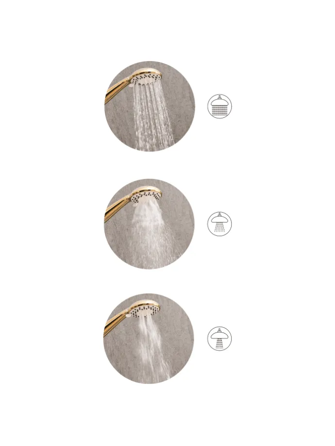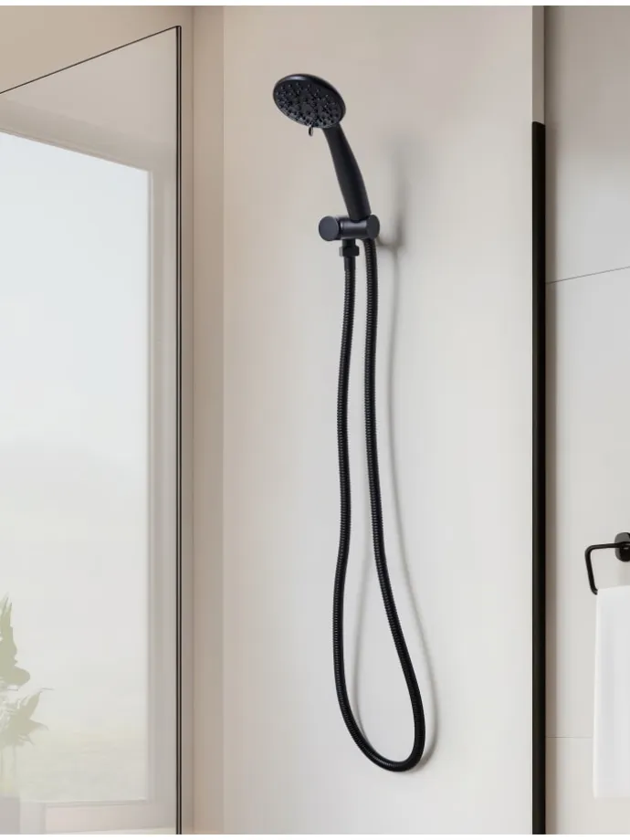 Metall-Handbrause mit Schlauch. Dieses Duschset enthält einen flexiblen Schlauch und bietet drei verschiedene Strahlarten: Regen, Massagestrahl und eine Kombination aus beidem – für ein individuell abgestimmtes Duscherlebnis. Die Strahlfunktionen lassen sich ganz einfach wechseln, egal ob Sie Ihre Haare waschen oder einen entspannenden Regenschauer genießen möchten. Gefertigt aus hochwertigem Kunststoff und robustem Edelstahl, überzeugt das Set durch Langlebigkeit und Stil. Es ist mit gängigen Anschlüssen kompatibel und passt somit in nahezu jedes Badezimmer.