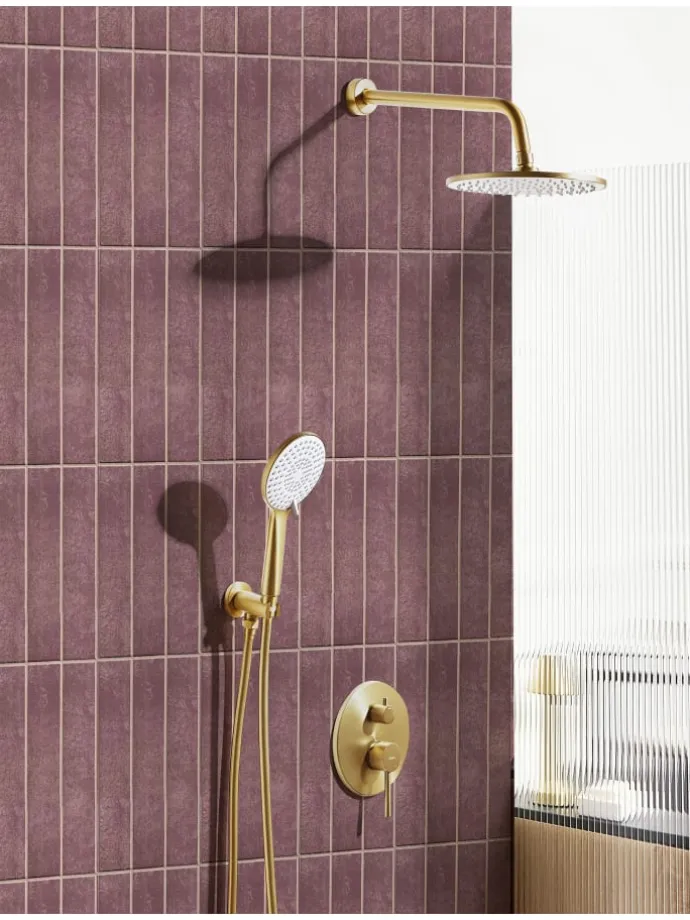 Unterputz Duschset mit Regendusche und Handbrause. Diese 3-teilige Einbau-Duscharmatur eignet sich für alle, die maximalen Duschkomfort und ein ästhetisches Gesamtbild lieben. Das Set umfasst eine Regendusche, einen Einhebelmischer sowie eine Handbrause mit passendem Schlauch, die alle aus langlebigen, robusten Materialien bestehen und farblich aufeinander abgestimmt sind. Dank der Unterputzmontage können Sie selbst entscheiden, wie hoch Sie alle Komponenten des Sets anbringen. Dabei sind weniger Elemente exponiert, was die Reinigung des Duschsets deutlich vereinfacht. Der Brausekopf lässt Sie zwischen 3 Strahlarten wählen: einem sanften Regenschauer, belebendem Massagestrahl und kraftvollem Wasserstrahl. So bietet Ihnen die Handbrause nicht nur Abwechslung beim Duschen, sondern auch gezielte Vorteile für Körper und Geist. Zudem kann man die Neigung des Regenduschkopfs regulieren, um so den Wasserstrahl gezielt auf sich zu richten.