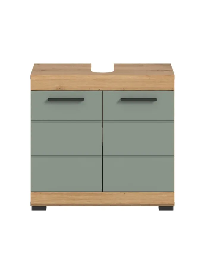 In unserem modernen Sortiment präsentieren wir einen Badezimmer Waschbeckenunterschrank in angesagter Salbei Nachbildung und Artisan Eiche Finish, der deinem Badezimmer einen modernen Look verleiht. Mit kompakten Maßen von 60x56x34 cm bietet er nicht nur praktischen Stauraum, sondern auch ein stilvolles Design. Entdecke die perfekte Kombination aus Funktionalität und trendigem Chic mit diesem angesagten Waschbeckenunterschrank.