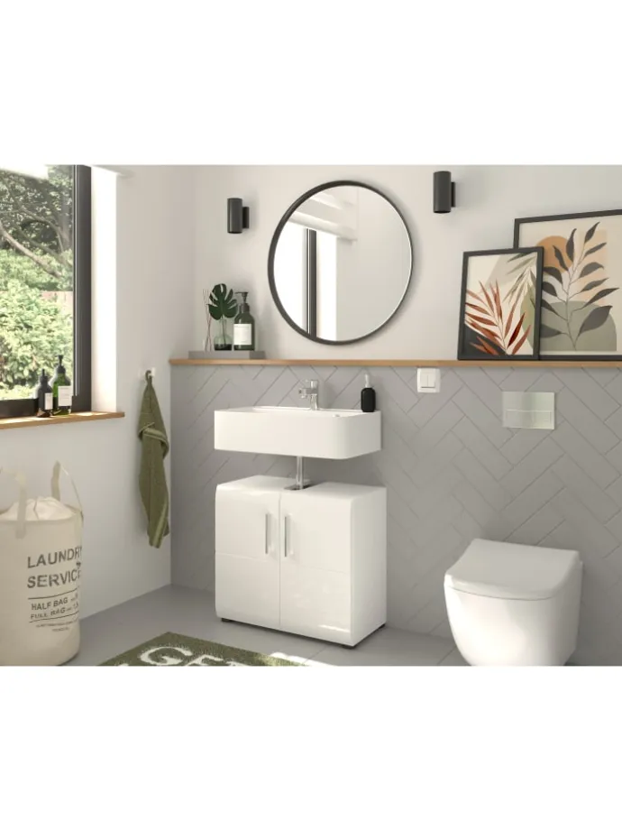 Entdecken Sie unseren platzsparenden Badezimmer Waschbeckenunterschrank in strahlendem Weiß, veredelt mit hochglänzenden tiefgezogenen Elementen für zeitlose Eleganz. Mit den kompakten Maßen von 60x54x32 cm bietet er nicht nur eine praktische Aufbewahrungslösung für Ihr Badezimmer, sondern verleiht auch Ihrem Waschbereich einen modernen Touch.