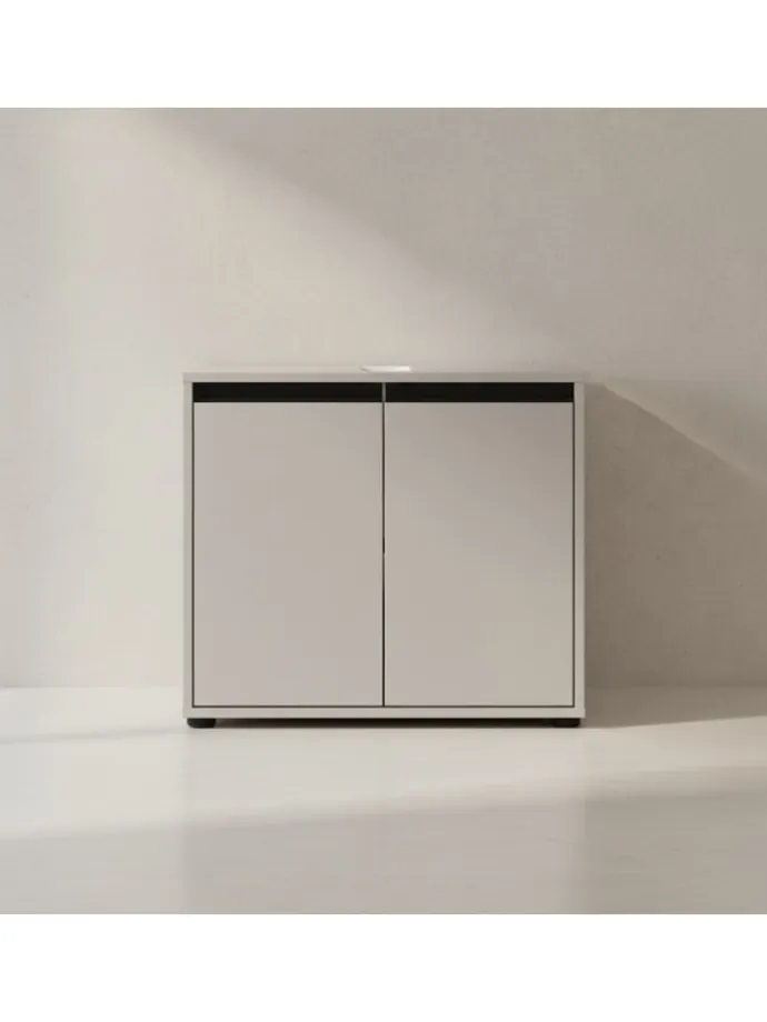 Kadima Design steht für durchdachte Wohnlösungen. Hinter den zwei Türen erwartet Sie ein Raumwunder, das sich Ihren Bedürfnissen anpasst. Der variable Einlegeboden bietet flexiblen Platz für Handtücher und Pflegeprodukte, während der präzise Siphonausschnitt eine einfache Integration unter Ihrem Waschbecken ermöglicht. Besonders hervorzuheben ist die Soft-Close-Technologie: Die Türen schließen dank integrierter Dämpfer sanft und flüsterleise – ein kleines Detail mit großer Wirkung für Ihren entspannten Start in den Tag.