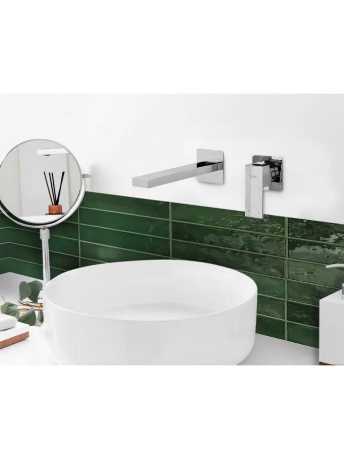 Einhebel-Waschtischmischer zur Wandmontage. Verleihen Sie Ihrem Badezimmer einen Hauch moderner Eleganz mit dieser wandmontierten Waschtischarmatur. Gefertigt aus robustem Messing mit glänzender Chrom-Oberfläche überzeugt sie durch klare, geometrische Linien und ein modernes Design. Der Einhebelgriff sorgt für eine einfache und präzise Regelung von Wasserfluss und Temperatur. Der schlanke Auslauf rundet das minimalistische Design ab und garantiert einen gezielten Wasserstrahl. Eine stilvolle und funktionale Ergänzung für jedes Badezimmer.