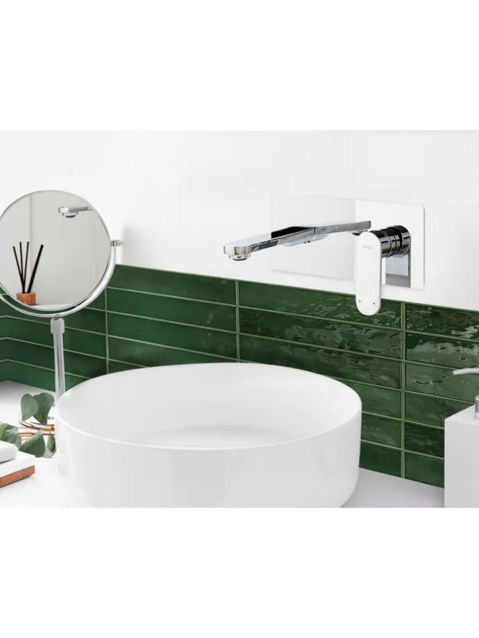 Einhebel-Waschtischmischer zur Wandmontage. Diese wandmontierte Waschtischarmatur bringt eine elegante Note in jedes Badezimmer. Mit ihrem klaren, minimalistischen Design und der glänzenden Chromoberfläche passt sie perfekt zu modernen Einrichtungen – besonders zu skandinavisch oder spa-inspirierten Räumen. Der ergonomische Hebel sorgt für eine einfache Regelung von Temperatur und Wasserfluss, während die Wandmontage für mehr Platz und Ordnung auf dem Waschtisch sorgt. Eine stilvolle und zugleich funktionale Wahl, die Ihrem Bad Eleganz und Komfort verleiht.