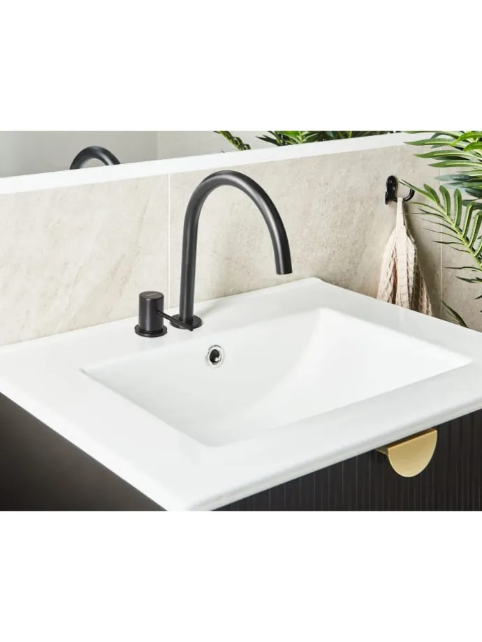 Matte Waschbeckenarmatur. Dieser Mischbatterie ist eine stilvolle und funktionale Ergänzung für Ihr Badezimmer. Gefertigt aus robustem Messing in schwarzer, matter Ausführung, verfügt sie über einen Einhebelmischer zur einfachen Regulierung von Wassertemperatur und -fluss. Der geschwungene Auslauf bietet ausreichend Platz für eine komfortable Nutzung. Dank der universellen Farbe passt der Wasserhahn zu vielen Einrichtungsstilen im Bad.