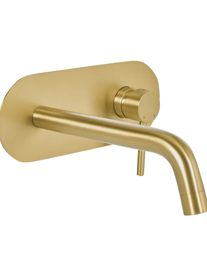 Einhebel-Waschtischmischer zur Wandmontage. Werten Sie Ihr Badezimmer mit dieser wandmontierten Mischbatterie auf, die durch ihren markanten, geometrischen Auslauf einen modernen, architektonischen Akzent setzt. Die minimalistische Form lässt sich in moderne Badezimmer einfügen, während sich dank des praktischen Einhebelgriffs die Wassertemperatur und -menge ganz einfach regeln lässt. Eine durchdachte Lösung, die Funktionalität und gutes Design ideal verbindet.