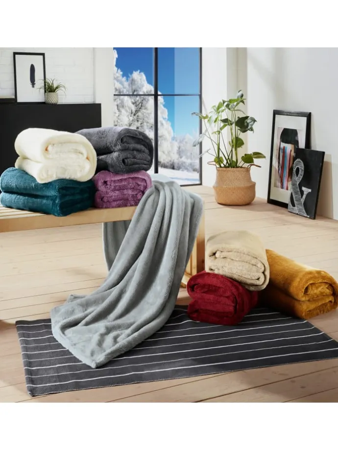 Erwin Müller Teddy-Fleece Wohndecke „Salerno“. Ein Wohnaccessoire zum Verlieben, watteweich, unglaublich gemütlich und wohlig wärmend. Vom ersten Griff an verführt die supersofte Decke zum Reinkuscheln. Eine Seite besteht aus flauschigem Teddyfleece, die andere aus samtigem Velours. Zuhause auf dem Sofa oder unterwegs auf Reisen – Sie werden diese vielseitige Decke nicht mehr missen wollen. Sie ist pflegeleicht und gut waschbar. Rundum mit schmalem Saum eingefasst.