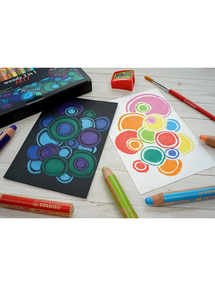 – praktisches Multitalent: Buntstift, Wasserfarbe und Wachsmalstift in einem