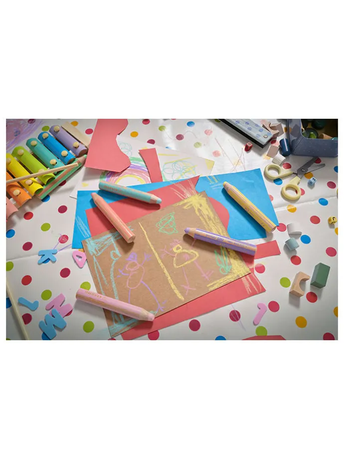 – praktisches Multitalent: Buntstift, Wasserfarbe und Wachsmalstift in einem