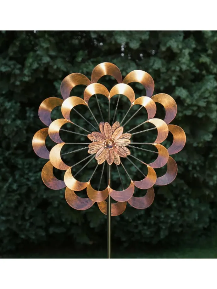 XXL Doppel Windrad ANTIK – Gartendeko – Metall – Erdspieß – H: 1,80m – kupferfarben Das kupferfarbene Doppel Windrad ANTIK aus Metall ist eine ganz besondere Dekoration für Deinen Garten oder für Deine Terrasse.