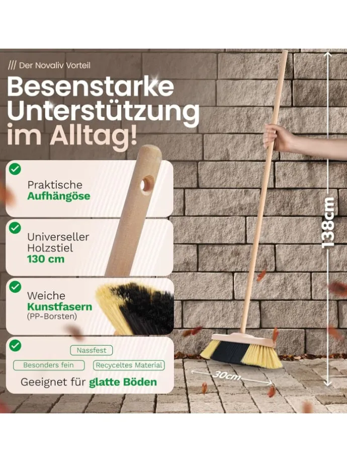 SPITZENQUALITÄT: Dicht besetzte Borstenreihen im Besenkopf. Der Zimmerbesen besitzt ein Metallgewinde mit deutschem Gewinde. Dadurch ist es sehr stabil und für viele Stiele geeignet