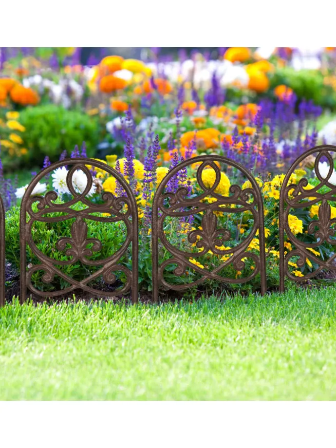 Mit dem dekorativen Beetzaun gestaltest und verschönerst Du Deinen Garten schnell und einfach. Das 10-teilige Steckzaun-Set ermöglicht eine saubere Umrandung von Beeten, Rasen und Wegen. Der Zierzaun verfügt über Erdspieße, welche einfach in den Boden gedrückt werden. Es gibt keine Verbindungen, sodass die Beetumrandung individuell gesteckt werden kann. Der Mini-Gartenzaun ist mit einem kunstvollen Muster im rustikalen Vintage-Look verziert.