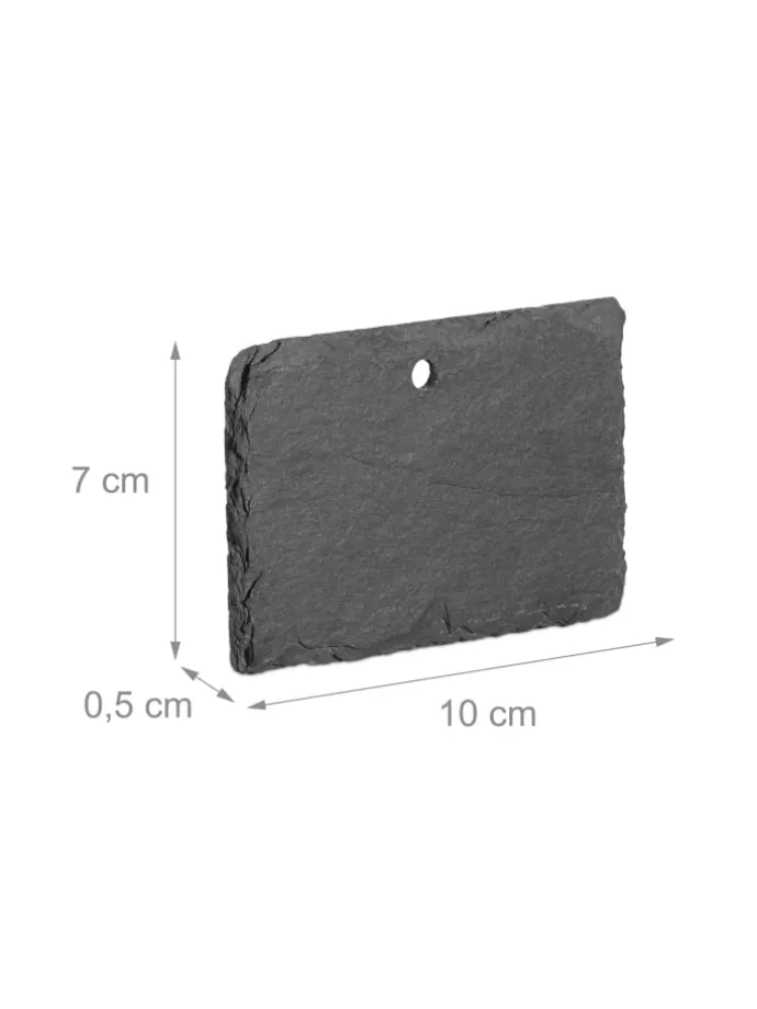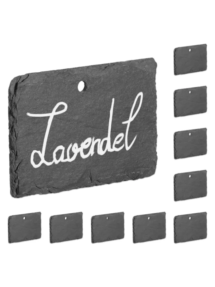 Mit den stilvollen und zugleich funktionalen Schiefer-Pflanzenschildern verschönerst Du Garten, Balkon und Blumentopf. Die 10 Schiefertafeln eignen sich perfekt für die Kennzeichnung von Jungpflanzen im Kräuter- oder Gemüsebeet. Die wetterfesten Pflanzschilder lassen sich einfach mit Kreide oder Lackstift beschriften und am Loch aufhängen. Die rechteckigen Kräuterschilder bestechen durch ihren rustikalen Look und sind eine schöne Geschenkidee für alle Gartenfreunde.