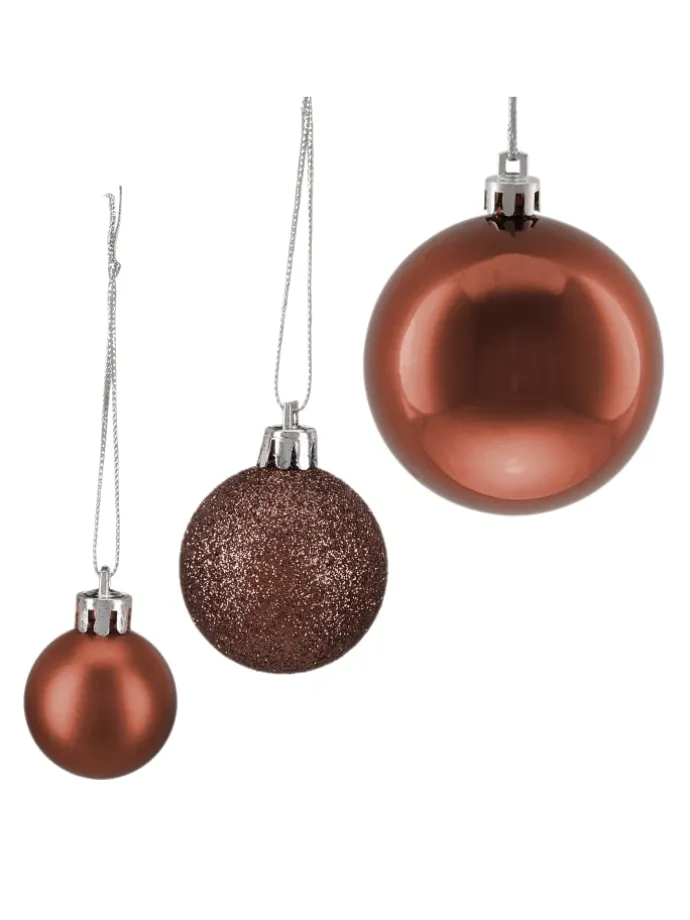 Mit dem großen Christbaumkugelset kannst Du Deinen Tannenbaum prachtvoll schmücken. Die Kugeln in unterschiedlichen Größen mit matter, glänzender oder glitzernder Oberfläche lassen sich dabei ganz individuell geschmackvoll arrangieren. Der festlich dekorierte Weihnachtsbaum bringt dann nicht nur Kinderaugen zum Strahlen, sondern sorgt auch bei Erwachsenen für eine besinnliche Atmosphäre zur schönsten Zeit des Jahres. An den silbernen Bändchen lassen sich die Baumkugeln leicht aufhängen.
