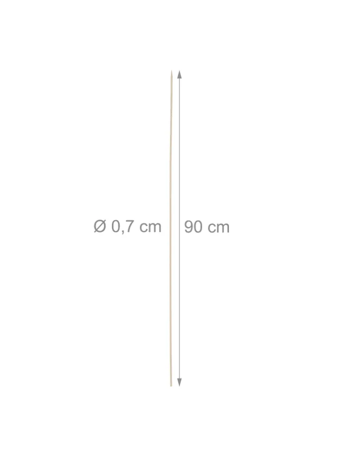 Die Grillsaison kann beginnen! Die extra langen Grillspieße kommen im 100er Set zu Ihnen, sodass Sie eine ganze Partygesellschaft ausstatten können. Ob Stockbrot, Marshmallows, Gemüse oder leckere Würstchen: Dank der 8mm dicken Spieße verrutschen die Köstlichkeiten nicht. Mit ihrer Länge von rund 90 cm halten die Bambusspieße reichlich Abstand zur Hitzequelle. Die idealen Mitstreiter, wenn Sie sich im Kreise Ihrer Familie und Freunde zu einer gemütlichen Runde am Lagerfeuer einfinden wollen.
