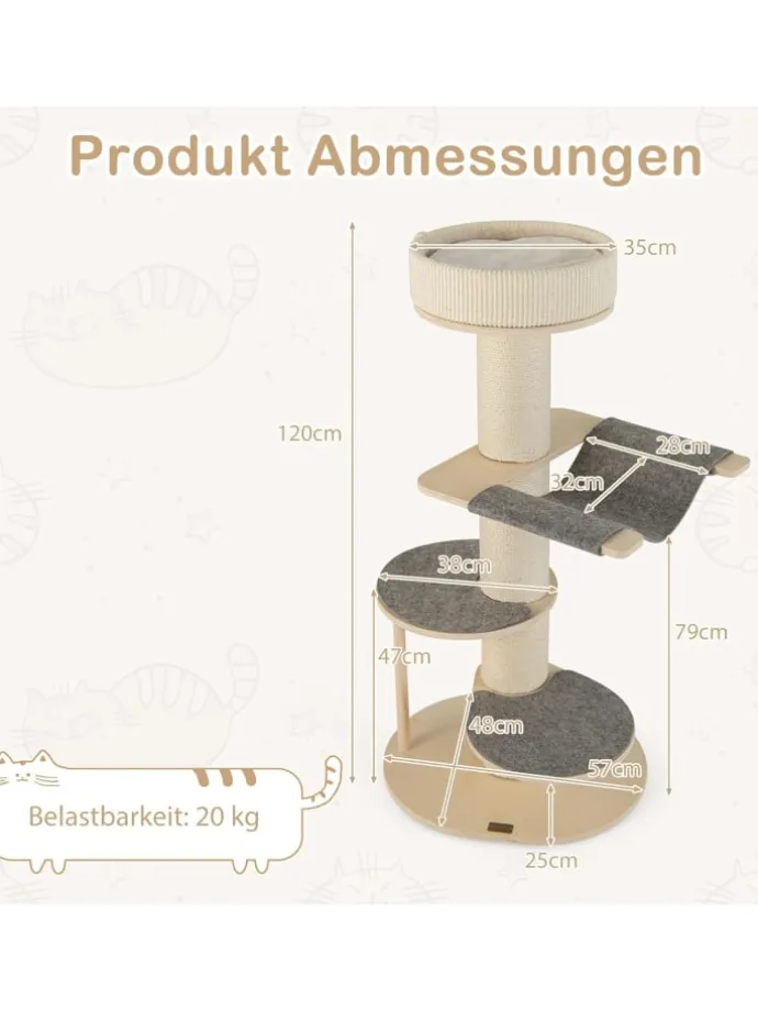 Erfüllen Sie mit dem vielseitigen Katzenbaum alle Bedürfnisse und Instinkte Ihres Katzenfreundes.