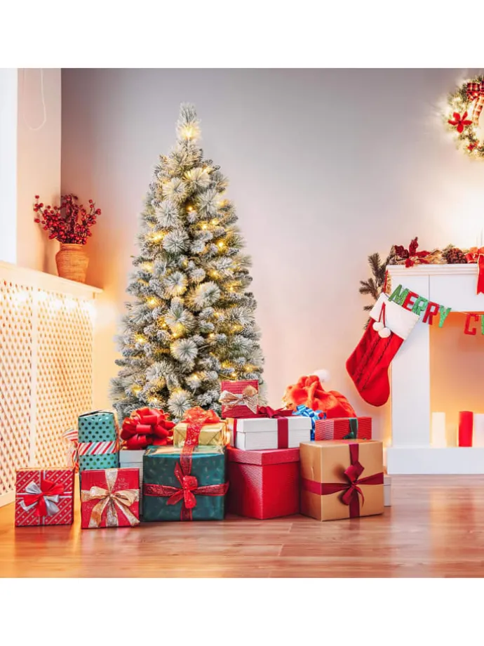 Machen Sie es sich in der gemütlichen Umgebung eines 150 cm großen künstlichen Weihnachtsbaums gemütlich, der von 130 warmweißen LED-Lichtern beleuchtet wird. Dieses Winterwunderland im Miniaturformat verfügt über 378 naturgetreue Zweigspitzen und üppige Tannennadeln, die mit einem Hauch weißer Beflockung bestäubt sind und die Frische eines Schneefalls heraufbeschwören. Der aus hochwertigem PVC gefertigte Baum ist ein feuerbeständiger, allergiefreundlicher und geruchsfreier Mittelpunkt, der sich perfekt für jeden Festraum eignet. Die unkomplizierte Pop-up-Struktur kann in zwei Baumabschnitte unterteilt werden, von denen einer zusammenklappbar ist und den Aufbau einfacher machen kann.