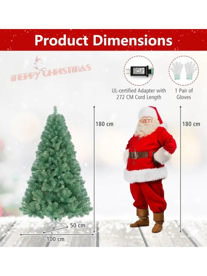 Unser 180 cm hoher vorbeleuchteter künstlicher Weihnachtsbaum ist ein Highlight, das Tradition und modernen Glanz in Ihre Weihnachtsdekoration bringt. Mit einer dichten Zweiganordnung von 688 Spitzen, die mit mehrfarbigen reflektierenden Folien bedeckt sind, erstrahlt jede Perspektive in Dunkelviolett, Fruchtgrün, Rosa oder Lavendel (4 Farben verfügbar). Beleuchten Sie Ihre Abende mit 250 warmweißen LED-Lichtern und wählen Sie aus 8 Modi, von ruhigem statischem Licht bis zu lebendigen dynamischen Einstellungen, um die perfekte Festtagsatmosphäre zu schaffen. Die stabile Kreuzmetallbasis garantiert einen sicheren Stand während der gesamten Saison.