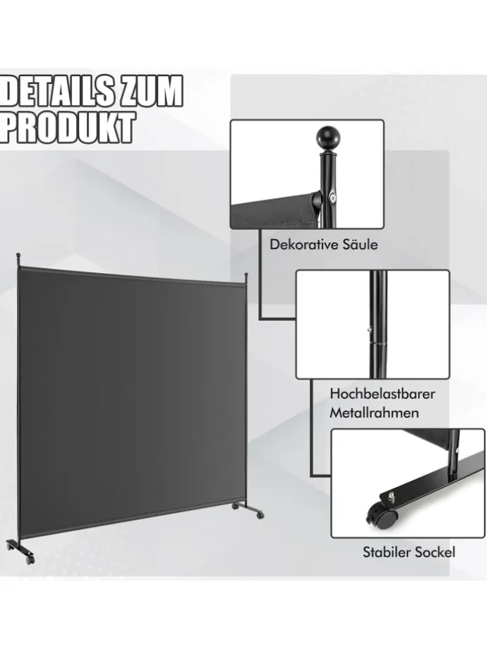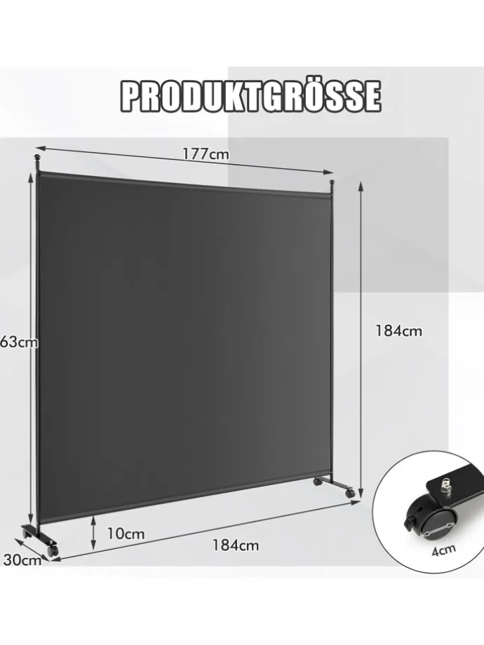 184cm Raumteiler auf Rollen in Grau