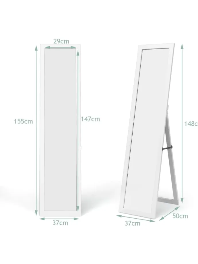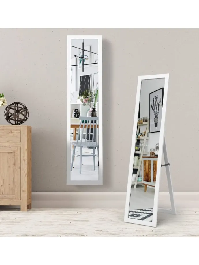 Suchen Sie einen Spiegel für Ihr Schlafzimmer oder Ihre Garderobe? Unser stilvoller und funktioneller Spiegel eignet sich perfekt als dekoratives Element für jeden Raum in Ihrem Haus. Er ist von einem hochwertigen MDF-Rahmen umgeben und zur Verstärkung und Stabilität mit MDF-Platten hinterlegt. Darüber hinaus ist der Spiegel aus Floatglas gefertigt, um Verzerrungen zu vermeiden, und zum Schutz mit einer bruchsicheren Membran ausgestattet. Das einfache, aber elegante Design erhöht die Ästhetik des Spiegels und eignet sich gut für die Heimdekoration. Außerdem kann er je nach Wunsch freistehen, hängen oder angelehnt werden.
