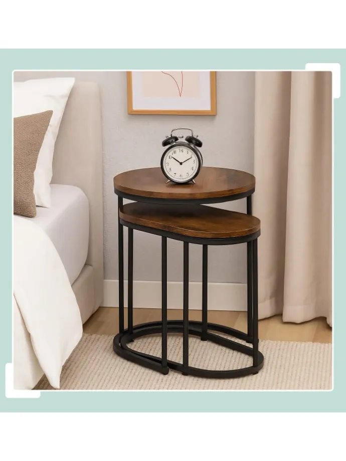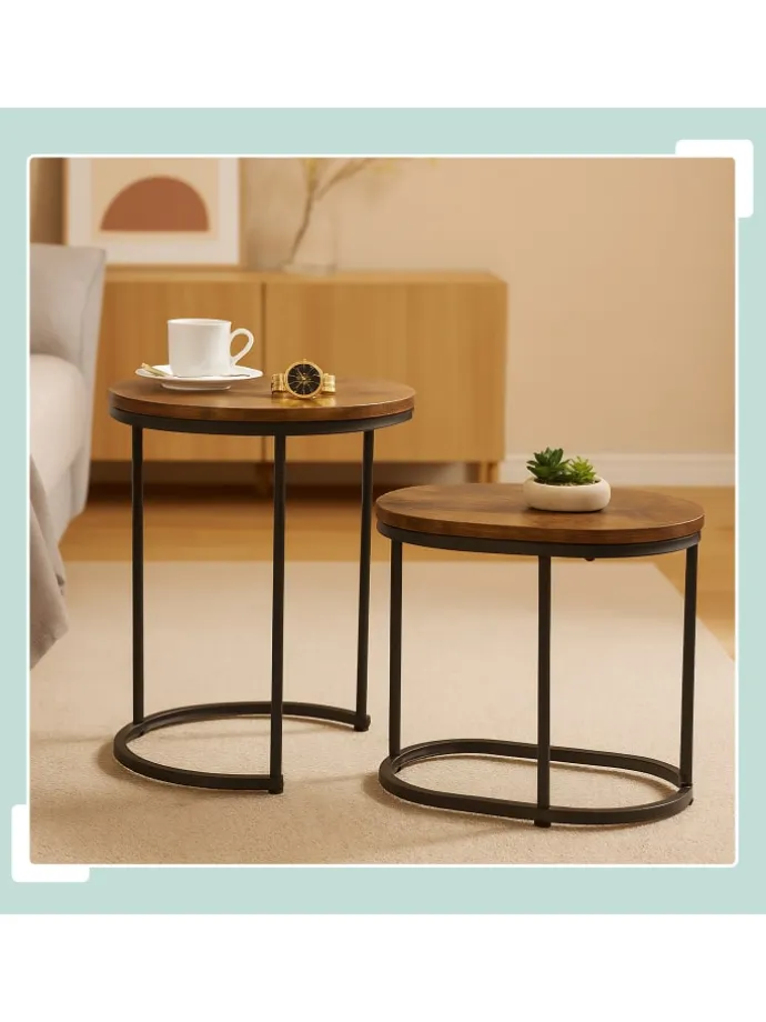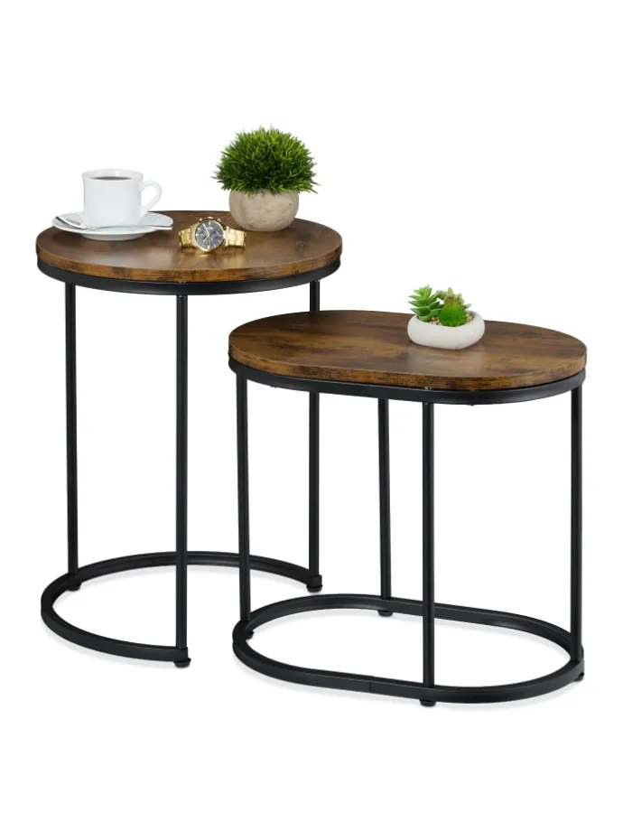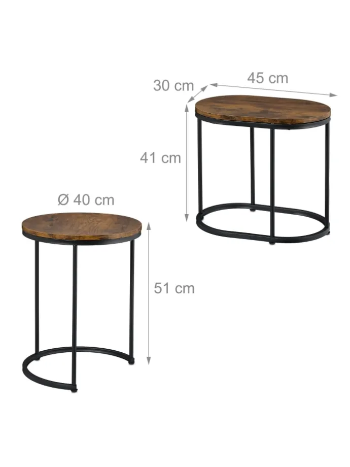 Getränke abstellen, ein Buch ablegen, Blumen anrichten oder Deko in Szene setzen – all das ist auf diesen dekorativen Ablagetischen im 2er Set möglich. Als Couchtische im Wohnzimmer sind sie eine dekorative und nützliche Ergänzung vor dem Sofa. Einzeln neben dem Bett im Schlafzimmer werden sie zum Nachttisch für Wecker und Lampe und im Flur zum praktischen Ablagetisch. Optisch überzeugen die Ziertische mit ihrer dekorativen Tischplatte in Holzoptik in Kombination mit den schwarzen Metallbeinen.