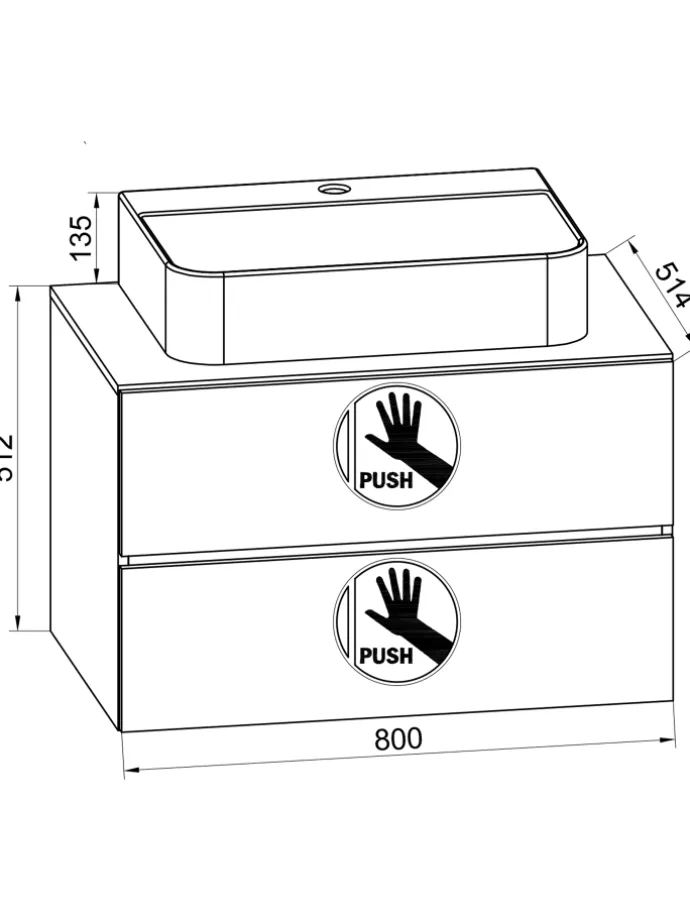 Das Badmöbel-Set besteht aus einem Unterschrank mit zwei Schubladen auf robusten Metallschienen. Das Möbel ist mit einer praktischen Push-to-open-Funktion ausgestattet.