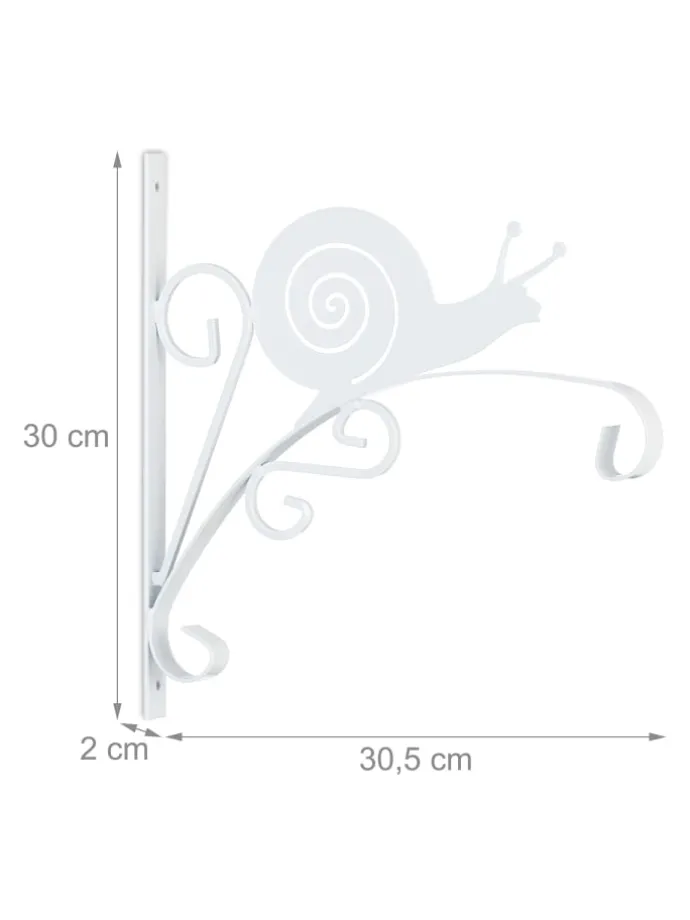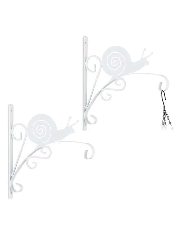 Die Blumenampelhalterung im 2er Set ist ein Hingucker neben Hauseingängen oder an Balkonwänden. Dank Schneckenmotiv und Vintage Design bringt der Wandblumenhalter Deine Pflanzen besonders gut zur Geltung. Auch Laternen, Windspiele und Blumenkränze finden an dem dekorativen Wandhaken Platz. Dabei setzt die Blumenhalterung verspielte Akzente und passt hervorragend zum angesagten Landhausstil. Der Blumenhalter aus Eisen ist robust und lässt sich mithilfe des Montagematerials einfach montieren.