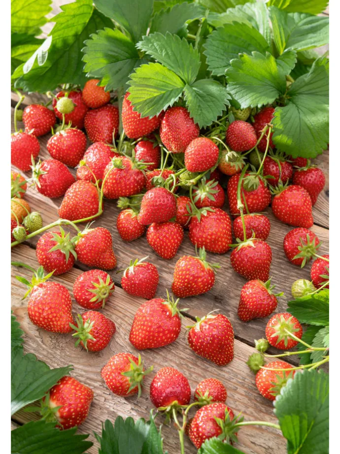 Wählen Sie ein Set mit 20 Erdbeer-Frigo-Pflanzen (Fragaria Ostara) – perfekt, um sofort eine reichhaltige Ernte in Ihrem Garten zu starten.
