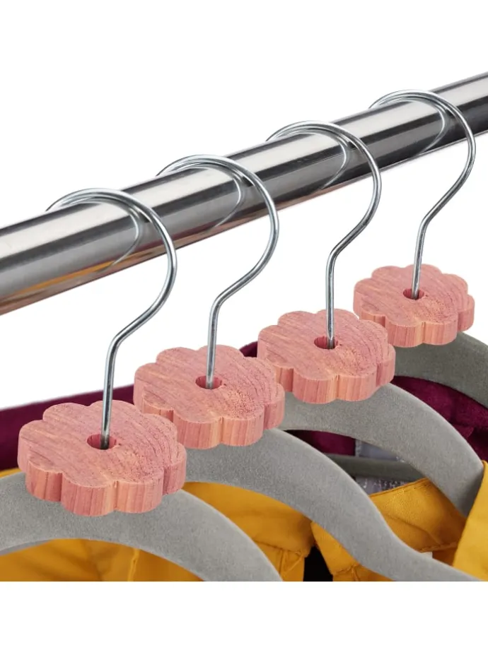 Mit den Zedernholzscheiben vertreiben Sie Motten effektiv aus Ihrem Kleiderschrank. Für eine erfolgreiche Mottenabwehr, stecken Sie die Ringe auf die Kleiderbügel und legen diese zwischen der Kleidung aus. Der von Menschen als angenehm empfundene Geruch des Holzes, verjagt die Schädlinge und im Nu ist der Schrank wieder mottenfrei. Dabei wirken die natürlichen Mottenringe langfristig. Ab und zu sollten die Scheiben mit Sandpapier abgeschliffen werden, um den Anti-Motten Effekt aufzufrischen.