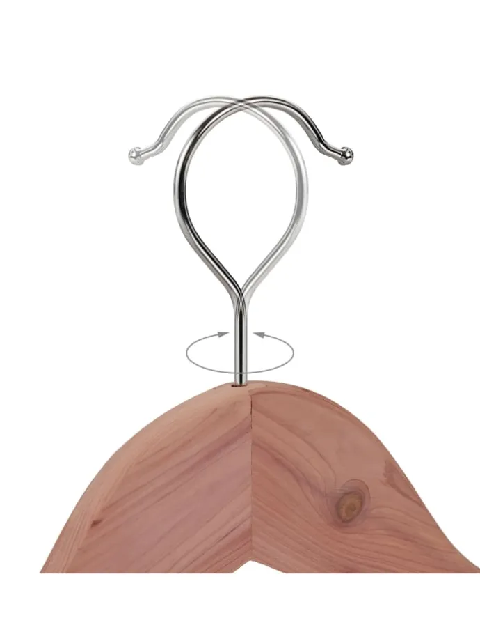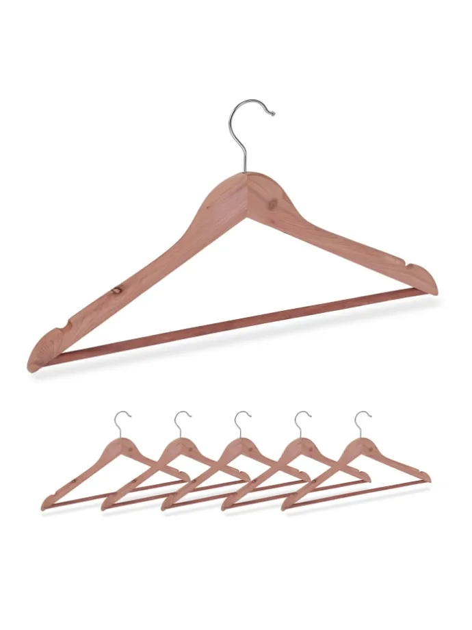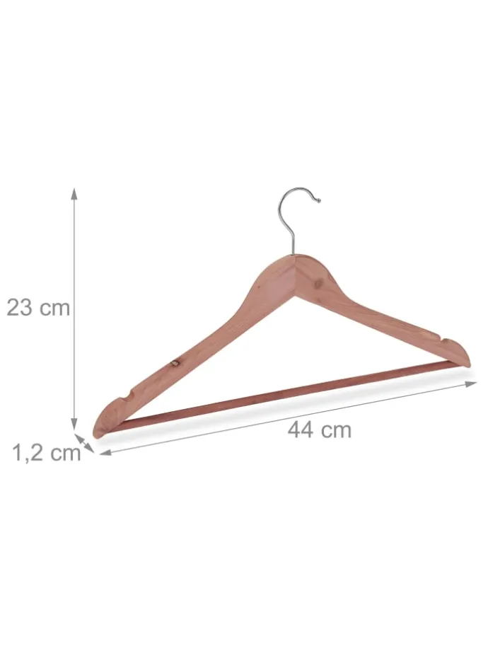 Mithilfe unseres Bügel-Sets schaffen Sie Ordnung und einen einheitlichen Look im Kleiderschrank. Auch für Modegeschäfte sind die Sakkobügel mit Hosenstange dank ihrer hohen Qualität bestens geeignet. Die eingekerbten Blusenbügel sind aus Zedernholz gefertigt, welches durch seinen angenehmen Duft einen natürlichen Mottenschutz bildet. Dabei sollten die Bügel aller 3-6 Monate mit feinem Sandpapier geschliffen werden, um den Geruch und somit den Anti-Motten Effekt zu erhalten.