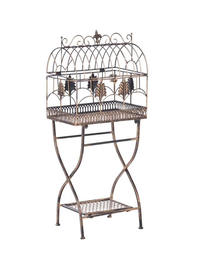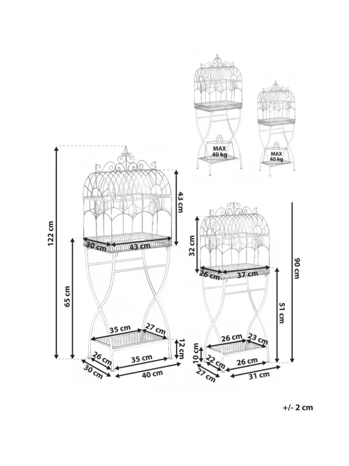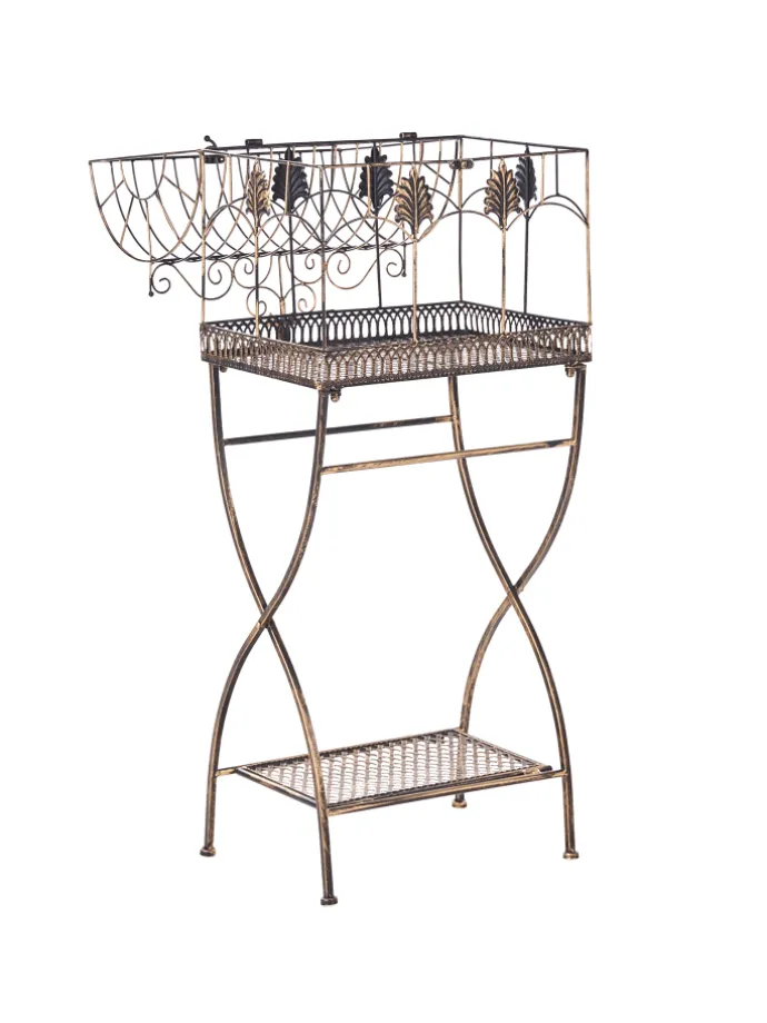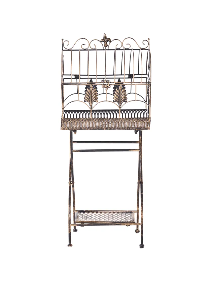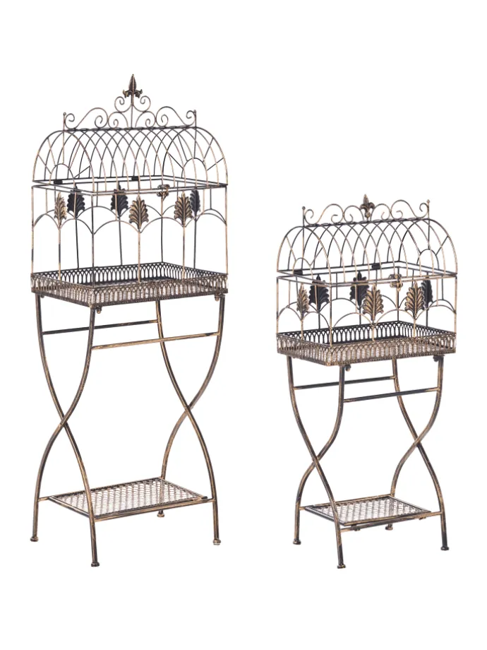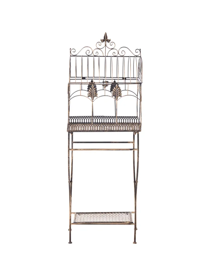 Set Gartenregal im Vintage-Stil. Verleihen Sie Ihrem Balkon, Ihrer Terrasse oder Ihrem Garten mit diesem eleganten Set aus Eisenregalen für den Außenbereich einen zeitlosen Charme. Dank ihres wunderschön verzierten, vintage-inspirierten Designs eignen sich diese Regale perfekt, um Topfpflanzen, Blumen oder dekorative Akzente zu präsentieren. Sie sind stabil und stilvoll und ihre graue Oberfläche im Used-Look verleiht ihnen einen Hauch von rustikaler Romantik, wodurch sie sich ideal für eine klassische oder Shabby-Chic-Außenausstattung eignen. Die filigranen Verzierungen und geschwungenen Details erinnern an die Anmut antiker Gartenmöbel und verwandeln jeden Außenbereich in einen charmanten Rückzugsort.